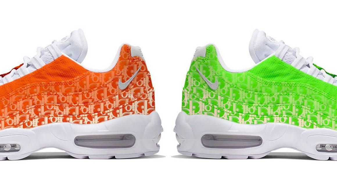 Following the success of the *major* Jordan Dior, we're not surprised that the luxury fashion house is rumoured to team up with Nike again. This time, Dior is set to take on the classic Air Max 95! The shoe will arrive in two colourways, Volt and Orange, and feature Dior's signature emblem. Of course, all we've got is mock ups. But we can dream, right!?