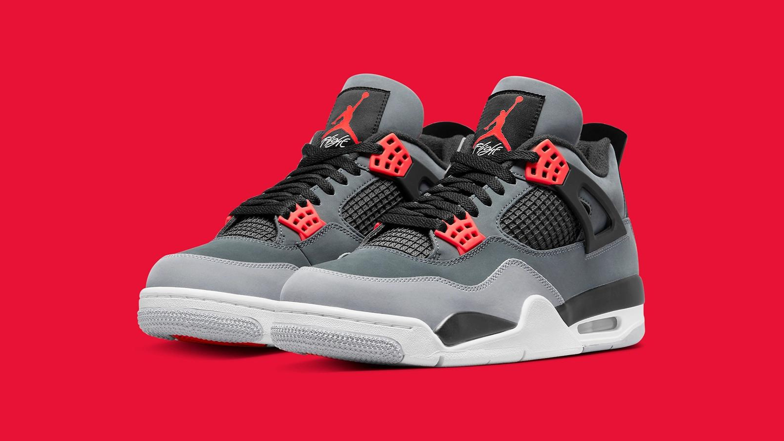 Similar in makeup to Jumpman's classic Air Jordan 4 Green Glow, the Jordan 4 Retro Infrared fuses vibrant tones with a natural base. Dressed in varying shades of grey on its nubuck upper, the sneaker's eye stays, outsole accents and Jumpman branding feature in the titular shade. Finally, a clean white midsole completes the design.