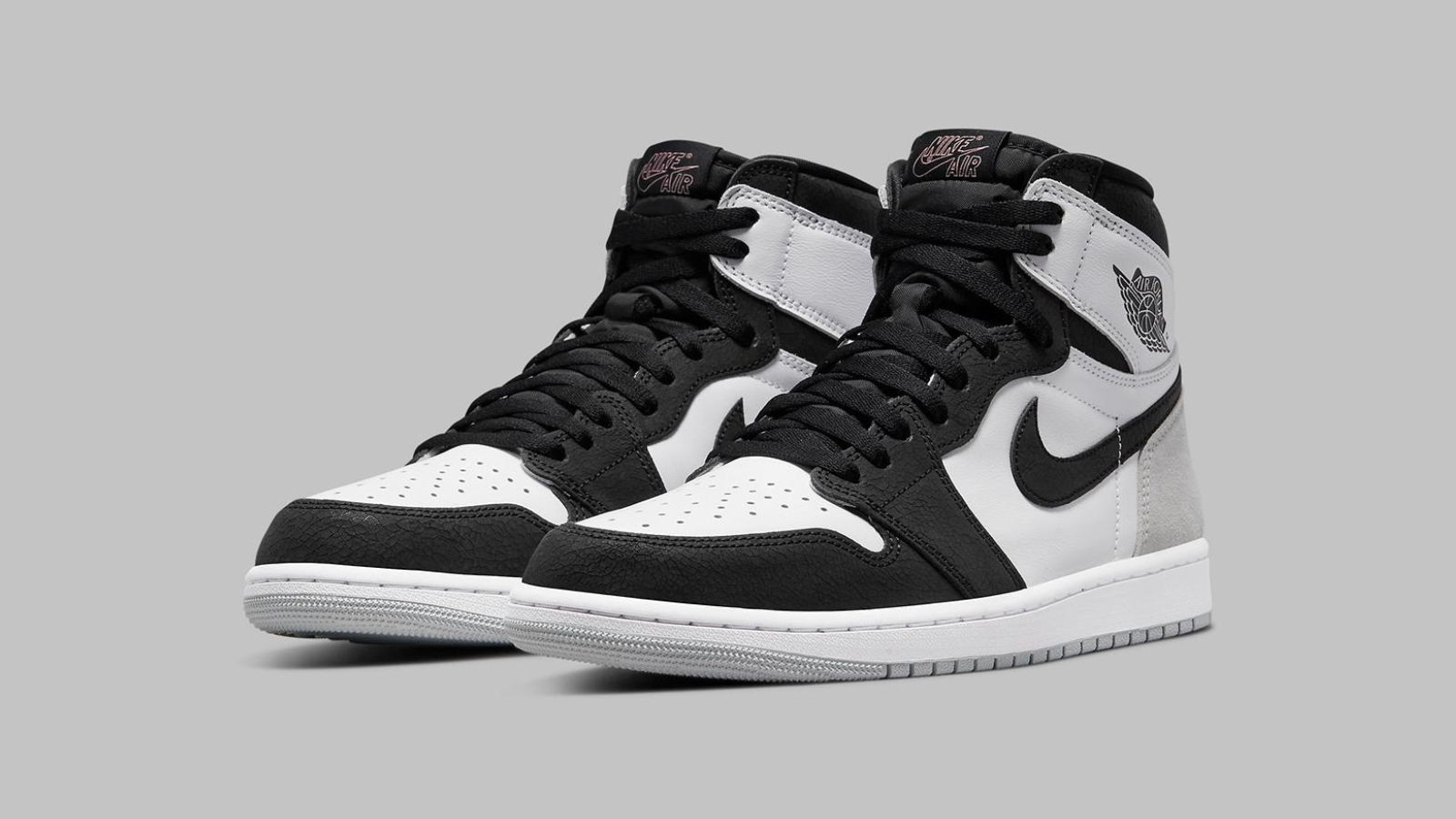 An ultimate shoe for minimalist sneakerheads, the Jordan 1 Retro High OG Stage Haze is soft and smokey throughout. With a white pebbled leather base, stark black suede overlays and light grey suede backends, its only contrast comes in the form of light coral branding across the tongue.