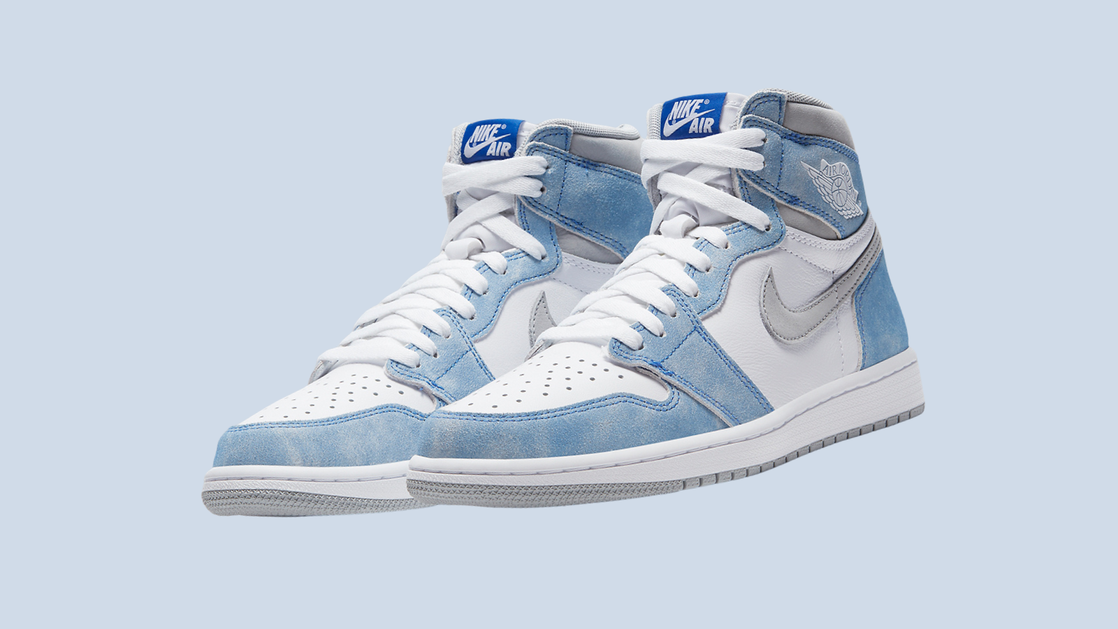 The final sneaker on our list? The Jordan 1 Hyper Royal! The sneaker hit our radar back in October 2020, and finally dropped in April. It was labelled as one of the best upcoming releases of the year. And luckily, it delivered! For some, it's the metallic silver swoosh. For us, it's the blue and white oily suede finish.