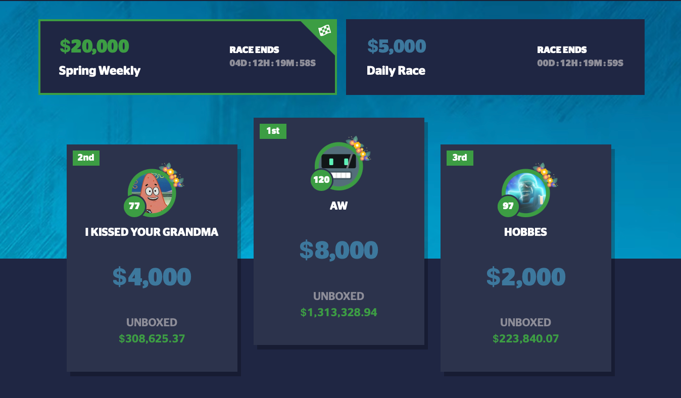 It’s race time! Unbox as many prizes as you can to grab a slice of $5,000 daily and up to $50,000 weekly.